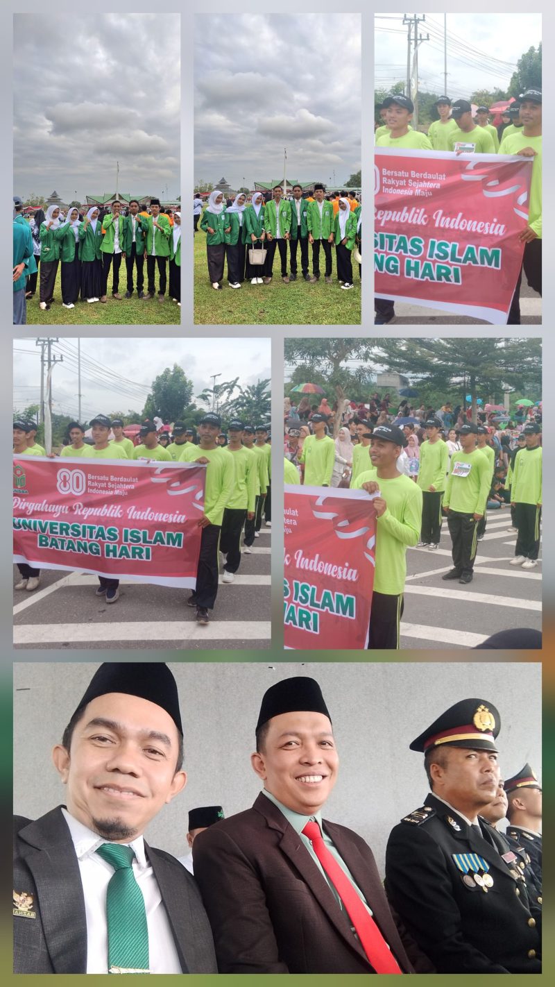 Batanghari, 17 Agustus 2025 – Universitas Islam Batanghari (UNISBA) turut ambil bagian dalam memeriahkan rangkaian kegiatan peringatan Hari Ulang Tahun (HUT) ke-80 Kemerdekaan Republik Indonesia yang diselenggarakan Pemerintah Kabupaten Batang Hari. Kehadiran UNISBA tampak sejak upacara pengibaran bendera hingga partisipasi dalam kegiatan gerak jalan bersama yang berlangsung penuh semangat.